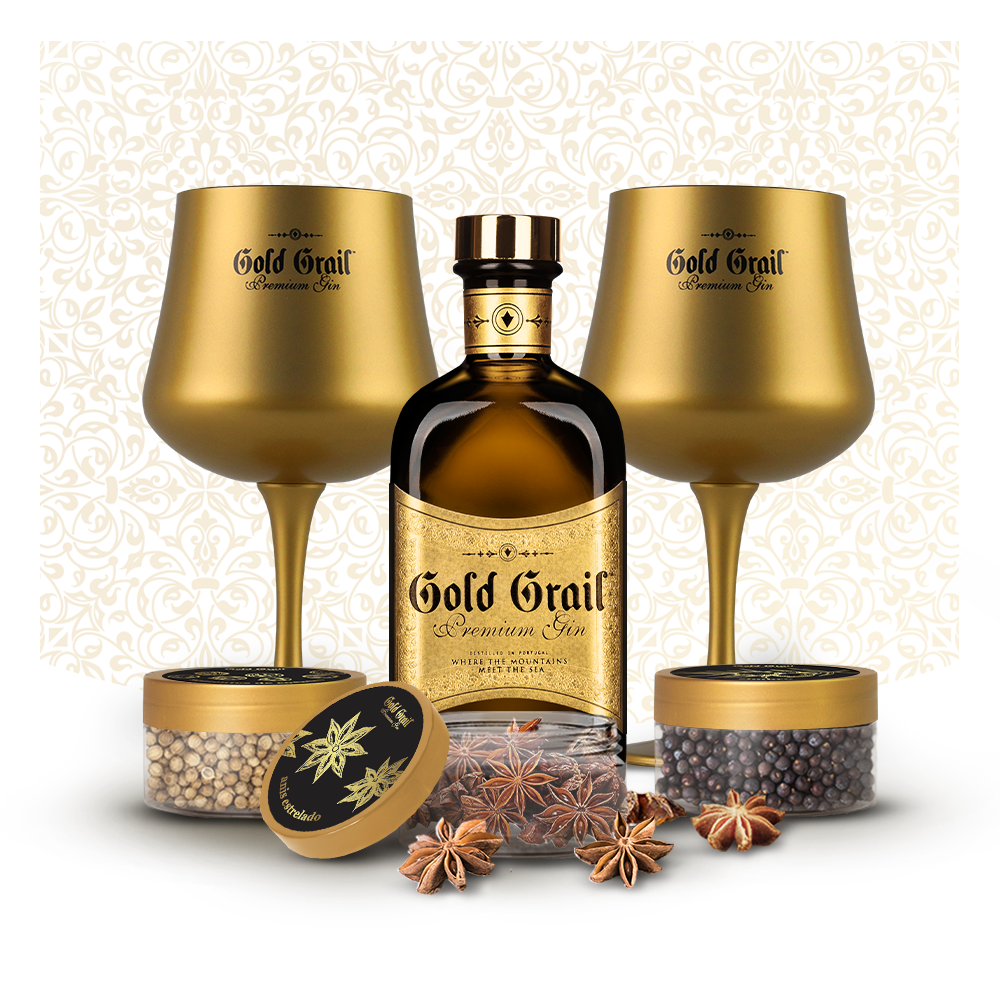 Gin Gold Grail se différencie par un palais avec une forte présence de fleur de Carqueja, de maïs et de graines de Goji. Il compile ainsi le concept unique du lien entre la robustesse de la montagne et la fraîcheur de la mer. Triple distillé et utilisant la technique de rétention des huiles essentielles vaporisées, un gin floral frais d’un caractère étrange et d’un goût inégalé a été obtenu.