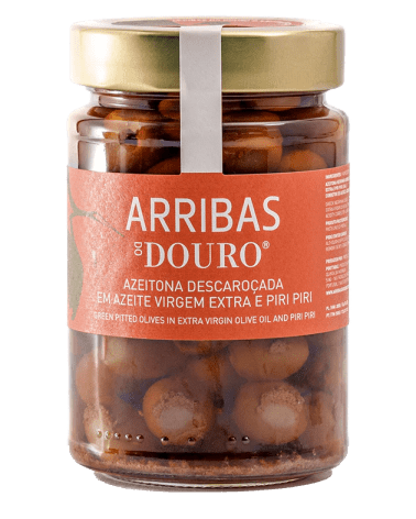 Une fois récoltées, les olives subissent un processus de séchage naturel dans des cuves conçues à cet effet. Elles sont ensuite soumises à un processus de tri manuel, au cours duquel les olives vertes et noires sont séparées. Après ce processus, les olives sont dénoyautées mécaniquement puis conditionnées dans de l'huile d'olive, de l'ail et d'autres condiments, ce qui donne naissance au produit final. Les olives utilisées dans ce produit sont de la variété « Negrinha de Freixo ». Il s'agit d'un produit destiné à la consommation directe tel quel. Il ne contient aucun additif ni conservateur. L'huile d'olive extra vierge ARRIBAS DO DOURO® dans laquelle sont immergées les olives agit comme assaisonnement, mais aussi comme conservateur naturel, avec l'ail et les autres assaisonnements utilisés.