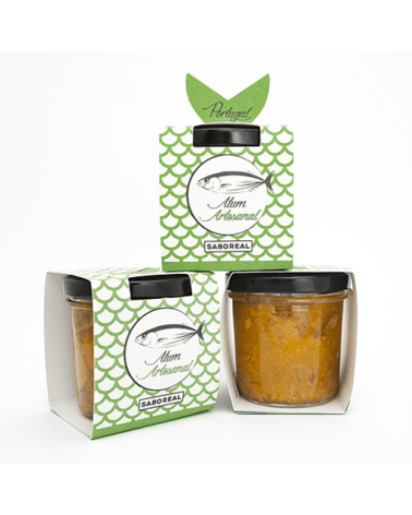 Petiscada Saboreal de Thon à l'Algarvia (100g) Ingrédients : Thon (50%), Tomate, Oignon, Poivron Vert, Jus de Citron, Huile d'Olive Vierge, Origan, Sel, Poivre Noir, Agar-Agar (gélifiant) Allergènes : Thon Durée de conservation : 2 ans Étiquettes et informations nutritionnelles en 5 langues (Portugais, Français, Anglais, Allemand et Néerlandais). Chaque conserve contient un poids net de 100 g. Conserver dans un endroit sec, à température ambiante, à l'abri de l'exposition solaire.