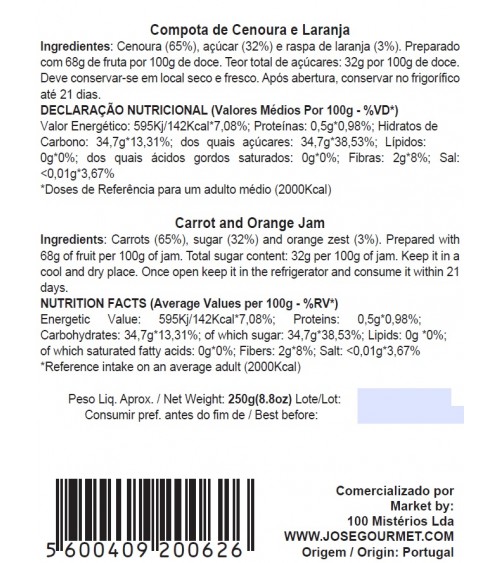 Jose Gourmet I CONFITURE D’ORANGE ET DE CAROTTE