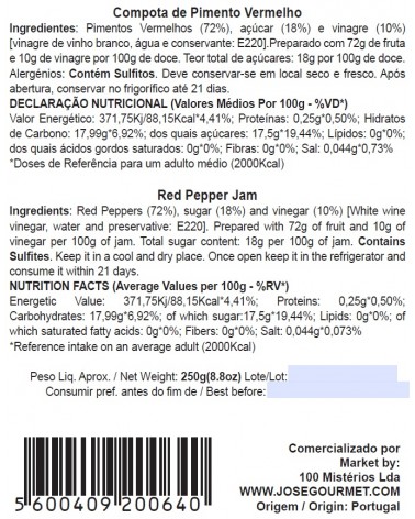Jose Gourmet I CONFITURE DE POIVRE TOUGE